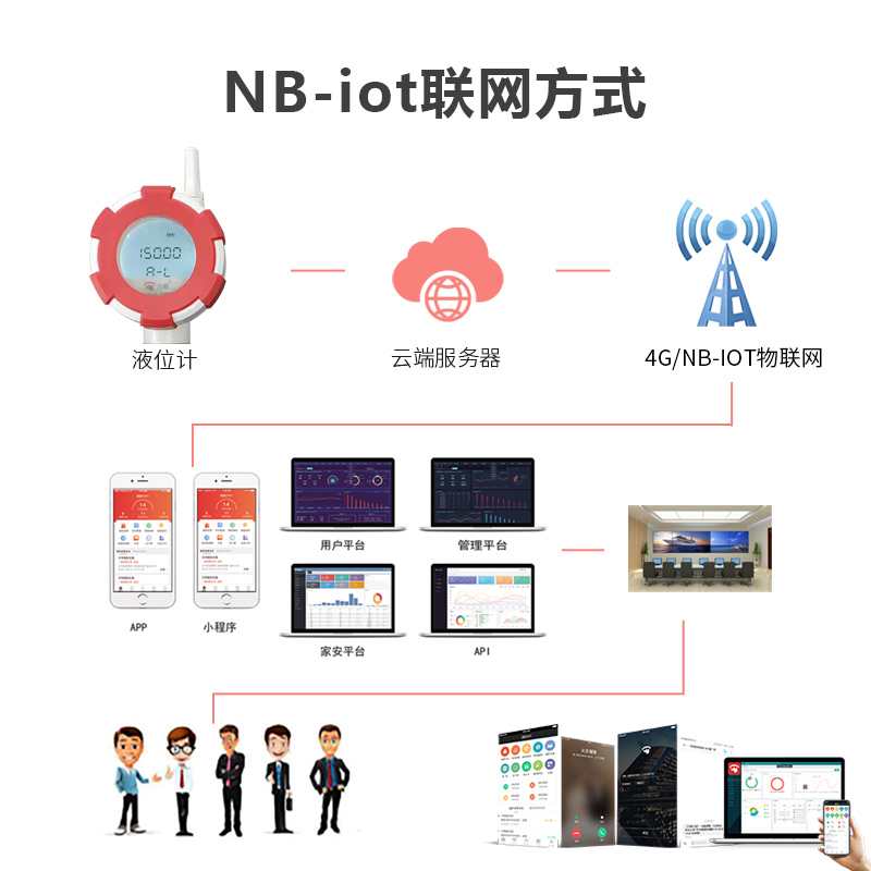 基于NB-IOT公网的广泛覆盖,可以将液位值、温度值、电池电量、信号强度、设备告警等数据信息通